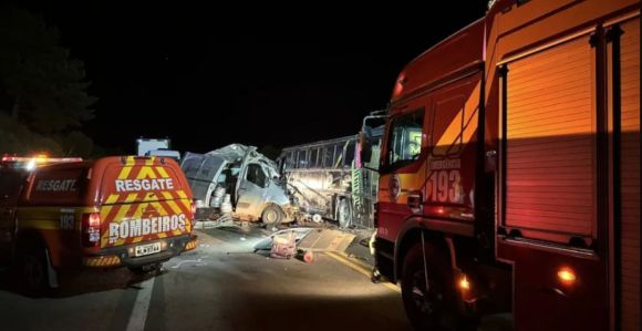 Acidente entre van e ônibus de banda deixa um morto e quatro feridos em SC