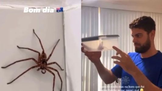 Segundo o casal, a aranha-caranguejo tinha mais de 15 centímetros. Para tirar o animal de casa, Gabriel usou um pote para capturá-lo e, em seguida, abriu o recipiente no quintal do prédio. "Não fazia sentido matá-la", explicou ele.