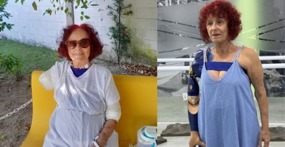 A escritora Roseana Murray, de 73 anos, recebeu uma prótese biônica nesta sexta-feira (24), após perder o braço direito em ataque de pitbulls em abril do ano passado, em Saquarema, na região dos Lagos, no Rio de Janeiro.