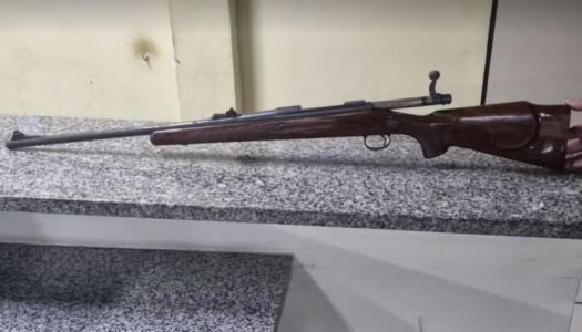 Quando abriu a caixa d'água, ela encontrou um um rifle Remington, modelo 700.