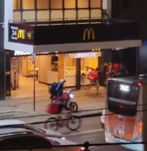 Uma unidade do restaurante McDonald's foi depredada em São Paulo durante um protesto de entregadores de aplicativo. Um grupo de policiais que estava ao lado do restaurante, localizado na Av. Ipiranga, não reagiu ao ato de vandalismo.