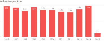 Segundo dados do Cenipa, (Centro de Investigação e Prevenção de Acidente Aeronáuticos), ocorreram 1.580 acidentes nos últimos dez anos, de 2015 a 2025.