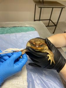 Sapo encontrado com a boca colada morre após passar por cirurgia no RS
