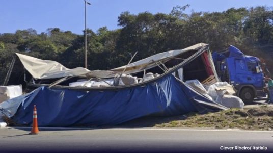Veículo transportava 26 toneladas de bobinas de plástico que eram levadas para Sete Lagoas, região Central de Minas Gerais