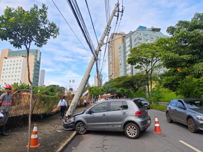 Batida na av. Raja Gabaglia, em BH, deixa trânsito complicado; poste corre risco de cair