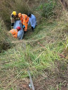 Depois, o cadáver foi retirado do matagal por uma funerária da região.