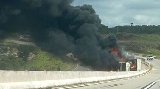 Os dois sentidos da BR-381 estão fechados na altura do KM 393, em Barão de Cocais, região Central de Minas, no final da manhã desta quarta-feira (6). De acordo com o Corpo de Bombeiros, uma carreta tombou e pegou fogo próximo ao trevo Boa Vista.
