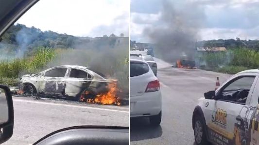 Um carro pegou fogo e interdita parcialmente a BR-040, em Contagem, na Região Metropolitana de Belo Horizonte, na tarde desta sexta-feira (05). O motorista não apresentou ferimentos.