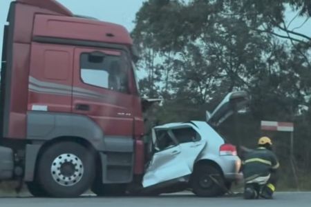 O carro tinha placa de São Paulo e seguia no sentido Bahia. Ainda não se sabe a dinâmica do acidente. O motorista da carreta não se feriu e afirmou que o carro invadiu a contramão.
