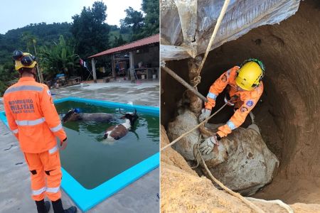 Em menos de 24h, vacas são resgatadas após quedas em piscina e cisterna em MG