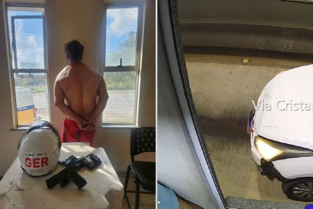 “Durante as buscas, foi apreendido o veículo, que se encontra inclusive em nome desse próprio autor e foi utilizado no crime, e também uma réplica de arma de fogo, que foi utilizada para poder ameaçar os funcionários durante os roubos cometidos”, detalhou o sargento Jonathan Lara do Ger.