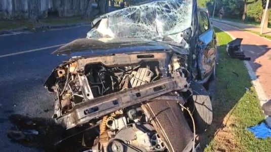 Nas imagens obtidas pela reportagem, é possível ver a frente do Volkswagen completamente destruída e a porta, que foi arrancada. A vítima fatal era o motorista do Voyage.