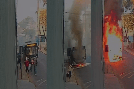 O coletivo ficou na carcaça. De acordo com as primeiras informações, a mangueira do combustível estourou e causou o fogo. Não houve impactos no trânsito na região.