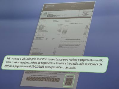 De acordo com o diretor de cadastro e atendimento ao contribuinte, Matheus Pacheco, a guia do IPTU contará com um QR Code para o pagamento via Pix. “Esse ano, teremos a possibilidade do pagamento via PIX. Para realizar o pagamento, basta escanear o QR Code presente na guia e realizar informando o valor que deseja pagar entre o mínimo e o máximo. Para ter o desconto, lembre-se de realizar o pagamento até o dia 31 de janeiro”, explica. Quem pagar o IPTU até o fim do próximo mês ganhará 5% de desconto no imposto.