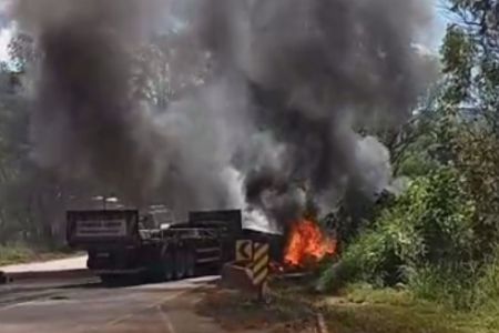 Motociclista morre em acidente com carreta na BR-040, em Itabirito; veículo pega fogo