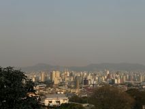 A paisagem enfumaçada ofusca vários pontos de Belo Horizonte, incluindo a Serra do Curral, cartão-postal da capital mineira. Fotos tiradas do mesmo lugar em abril e nesta quarta-feira (4) mostram a diferença.