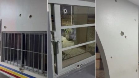 Um vídeo mostra como ficou o quartel da Polícia Militar (PM) depois do ataque de criminosos do ‘Novo Cangaço’ em Guaxupé, no Sul de Minas, na madrugada desta terça-feira (8). A imagem mostra várias marcas de balas nas paredes e vidros. Um policial diz no vídeo que as marcas são de fuzil 762. Um militar ficou ferido no braço por estilhaços.