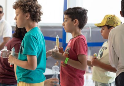 A oficina “Eu quero saber sobre: a água” estimula os pequenos a explorarem alguns dos fenômenos físicos que envolvem o líquido.