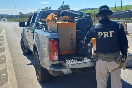 De acordo com a PRF, a caminhonete levava produtos de origem estrangeira, como eletrônicos, ferramentas e maquiagens.