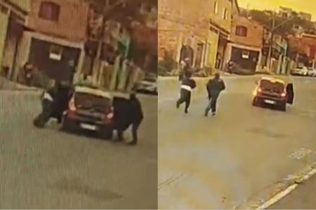 Um vídeo flagrou o momento em que os suspeitos fogem após o ataque em um Hyundai i30. O grupo é procurado pela polícia.
