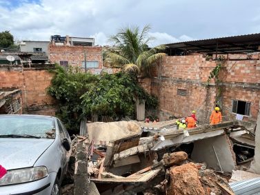 O Corpo de Bombeiros de Minas Gerais trabalha no resgate a uma vítima que está soterrada após o desabamento de um imóvel na manhã desta quarta-feira (25) no bairro Conjunto Paulo VI, na região Nordeste de Belo Horizonte.