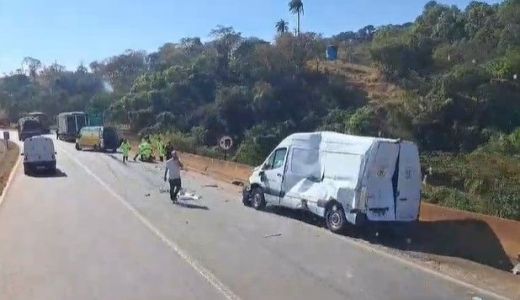 Três caminhões, três carros e uma van se envolveram em um acidente na manhã desta quinta-feira (1º)