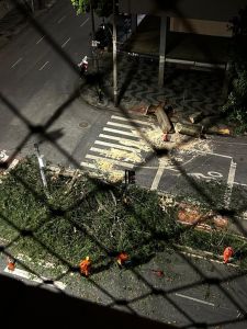 A ventania causou quedas de árvores na capital. Na região Centro-Sul uma árvore ficou atravessada na pista, bloqueando o trânsito na noite de sábado.