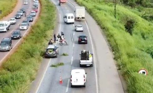O trânsito ficou interditado parcialmente, o que congestionou a via por pelo menos três quilômetros.