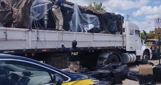 Agentes da Polícia Rodoviária Federal (PRF) encontraram a carga durante uma abordagem a um conjunto veicular (cavalo trator e semirreboque) que transportava diversas máquinas industriais. A operação aconteceu na altura do Km 296, da BR-251.