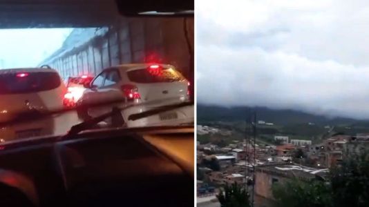 Motoristas de Betim, na região metropolitana de Belo Horizonte, se esconderam embaixo de um viaduto para fugir da chuva de granizo que cai na região neste fim de tarde de sexta-feira (19). Moradores de outras cidades da Grande BH também relatam chuva forte e muita ventania. Quase 400 municípios de Minas Gerais estão em alerta para o risco de tempestade até domingo (21).