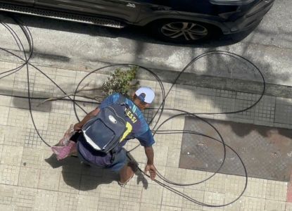 Moradores do bairro Buritis, na região Oeste de Belo Horizonte, flagraram, no fim da manhã desta sexta-feira (24), um homem cortando e furtando cabos na rua Consul Walter.