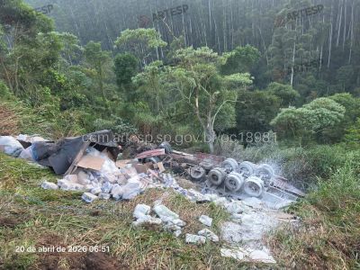 Caminhão cai de ribanceira e deixa um morto e um ferido grave em SP