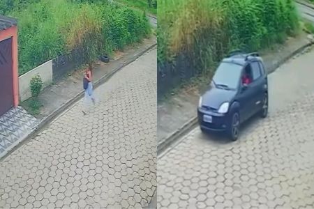 Câmeras do circuito de segurança da Avenida Monteiro Lobato, em Mongaguá, no litoral de São Paulo, flagraram o momento em que uma adolescente, de apenas 15 anos, é perseguida por um carro.