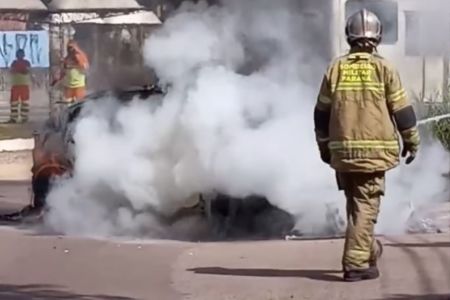 Os bombeiros foram acionados para realizar o combate direto ao incêndio e, embora a causa exata ainda dependa de perícia técnica, a suspeita inicial é de que o fogo tenha se originado na bateria do automóvel.