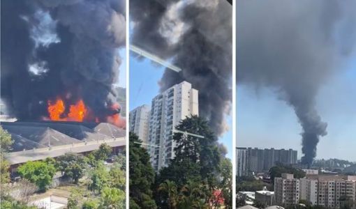 Vídeo: bombeiros combatem incêndio de grandes proporções em galpão em SP; imagens impressionam