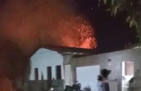 Imagens que circulam nas redes sociais mostram o momento da explosão e as chamas no telhado da casa, que ficou parcialmente destruída no incêndio. Veja o vídeo neste link.