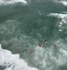 Vídeo: Quatro turistas são resgatados no mar com ajuda de surfistas, no litoral de SP