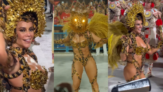 Paolla Oliveira virou onça ao desfilar na Marquês de Sapucaí na madrugada desta segunda-feira (12). A rainha de bateria da Grande Rio chamou atenção com uma fantasia reluzente que representava o samba-enredo da escola - "Transformação: nosso destino é ser onça".