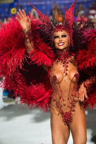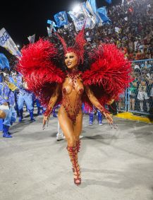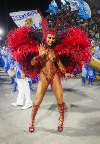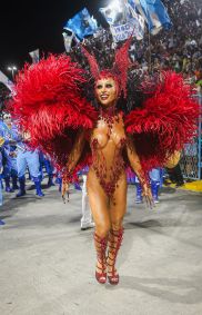 Rainha de bateria da escola, ela apostou na fantasia 'Rainha VampVila', sendo vestida pelo estilista Henrique Filho. O styling de Pedro Sales e a beleza artística de Krisna Carvalho complementaram o look.