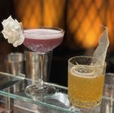Brindamos com espumante Arte Brut Rosé da Casa Valduga e Life Coquetéis. Fui feliz com o Lichia Martini decorado com uma rosa branca e o clássico Macunaíma ornamentado com uma finíssima folha seca.