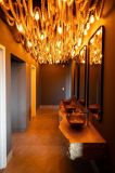 O restaurante tem um salão e varanda com capacidade para até 70 assentos, e uma área descoberta no jardim que reúne mais 16 lugares à mesa, com vista para um gramado de mais 800m2 de extensão.