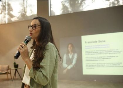 Franciele também chamou atenção para os desafios da tecnologia na educação: o acesso desigual à internet e equipamentos em regiões periféricas, a necessidade de incluir estudantes com deficiências, e o engajamento de alunos que estão cada vez mais acostumados à lógica de recompensas imediata, o que pede o uso de gamificação nas atividades.