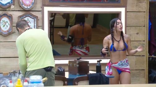 Luana explica que sempre que foi fazer o trato dos animais usou apenas a parte de cima do biquíni por ter "noção das coisas". No entanto, Albert diz que ela desceu de biquíni no primeiro dia.