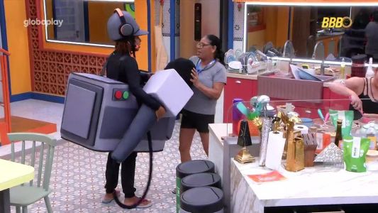 Cumprindo o Castigo do Monstro 'Plantão da Globo', por decisão de Delma, Anjo da semana, Thamiris precisa ficar fantasiada de câmera de TV e entrevistar os outros confinados do BBB 25.