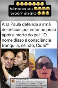 Ana Paula Renault, campeã do BBB 26, saiu em defesa da irmã Cida Renault, nesta sexta-feira (24), após ela ser criticada por estar na praia após morte do pai, Gerardo Renault.