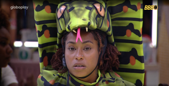 Nutricionista foi escolhida por Guilherme para ficar vestida de cobra até o programa de domingo (23)