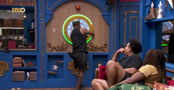 Enquanto estava na sala da casa mais vigiada do país com Lucas Henrique e Raquele, o cantor simulou ir apertar o botão.