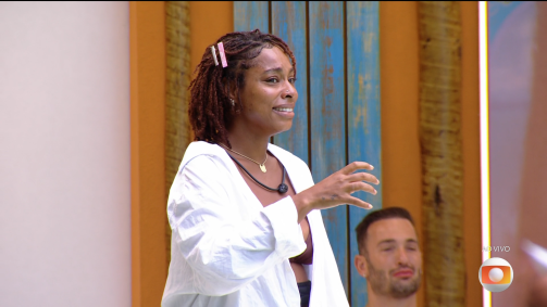"Fala", pede Vilma. O ator não se estende: "Tem também uma diferença, né". Depois, ele se afasta e se aproxima de outros participantes.
