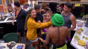No momento, Thamiris se aproxima e pede a irmã para "maneirar" na forma de falar para evitar que elas sejam opção de voto. "Você tem medo de tudo, também. Não posso deixar de me posicionar, cara", retruca Camilla.