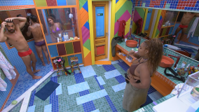 BBB 25: Giovanna toma banho com Maike e sister reage: 'danadinha'